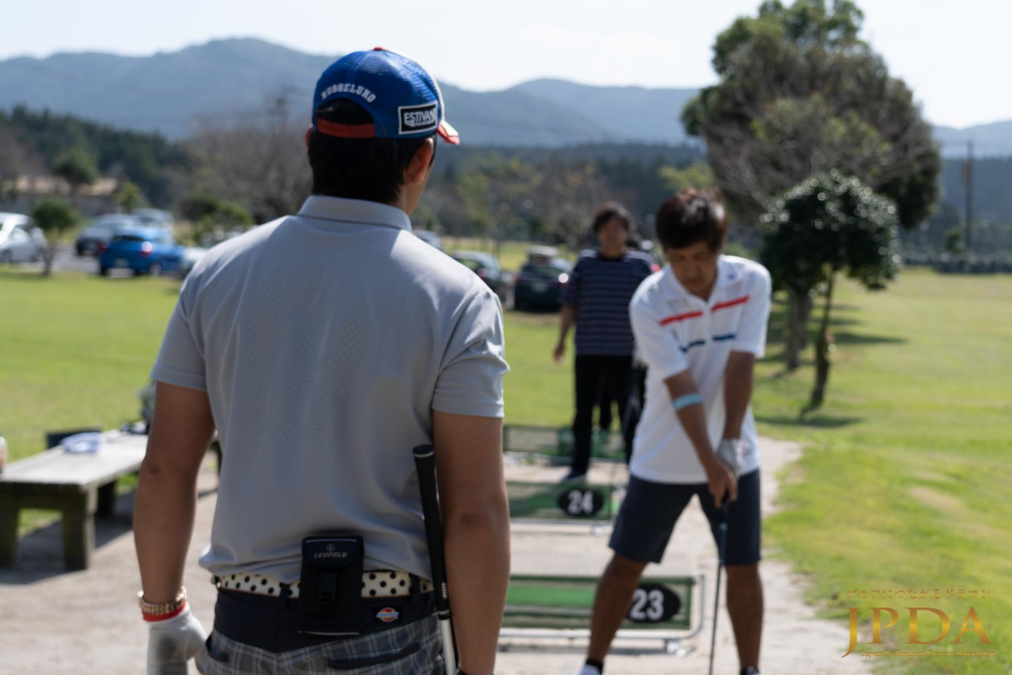 1名のレッスンプロが3名のアマチュアゴルファーを受け持ち、