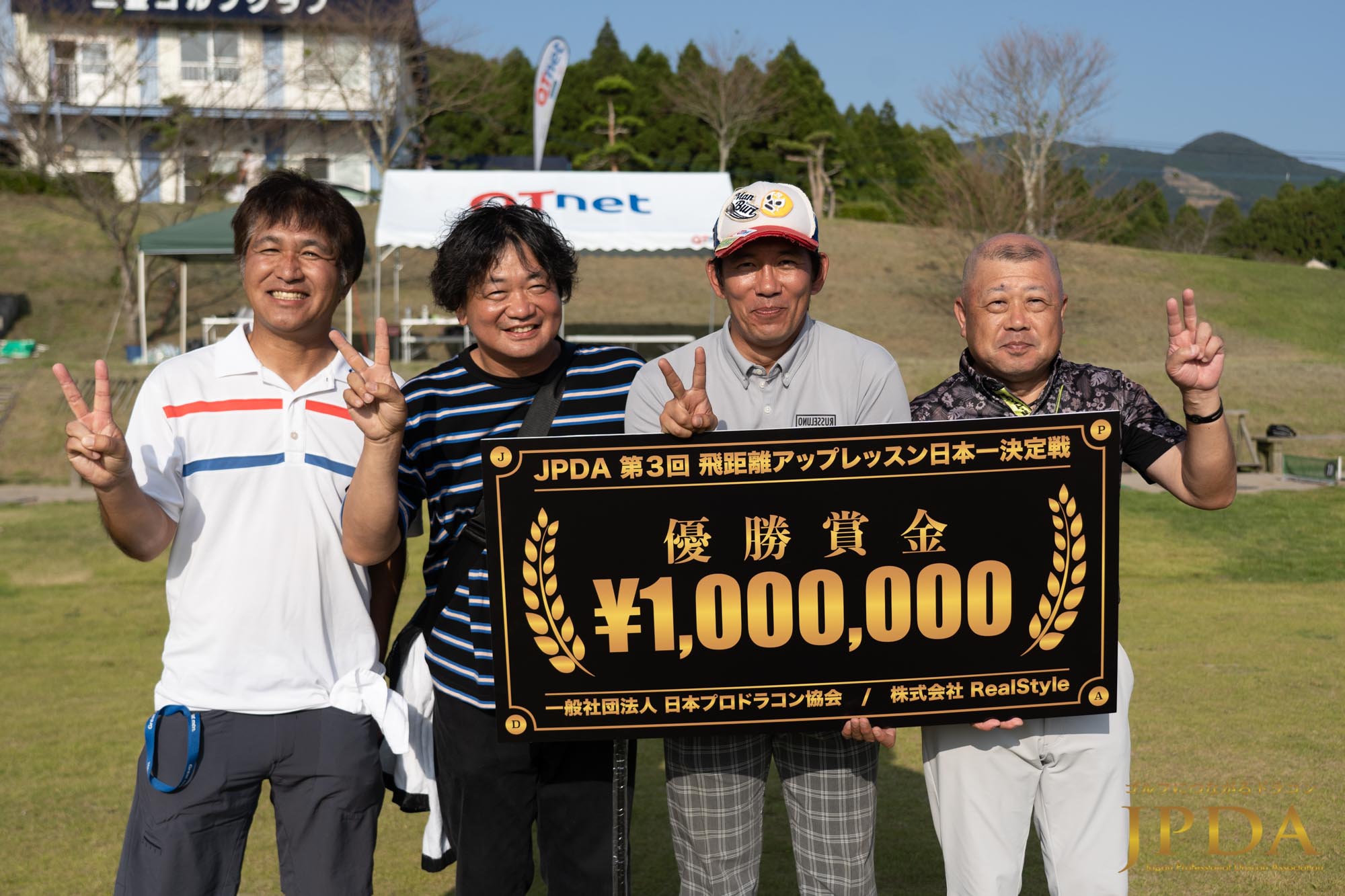 アゲインストの吹く中、チームメンバーの飛距離をたった2日間のレッスンで+26.5ヤードを上げた梅野プロには賞金100万円が贈られます。