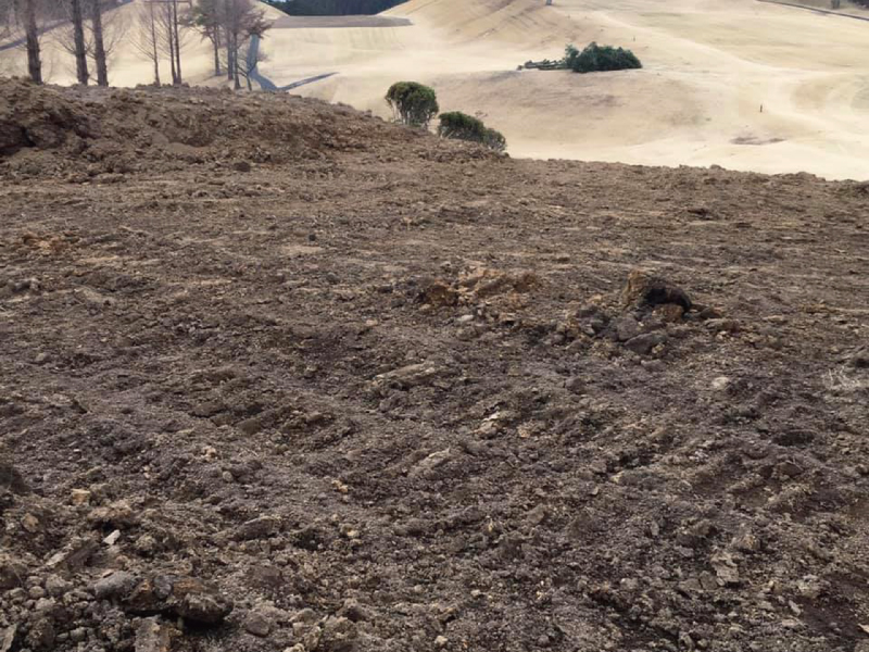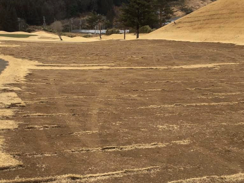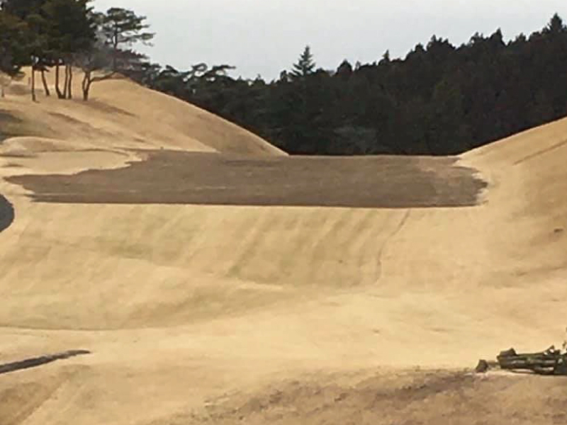 今年の11月に、当協会が賞金総額1,000万円で開催します「プロドラコンツアー全日本選手権」に間に合わせてくださるとの事で、今月からコース改修の工事がスタートし、フェウェイの芝が剥がされました!